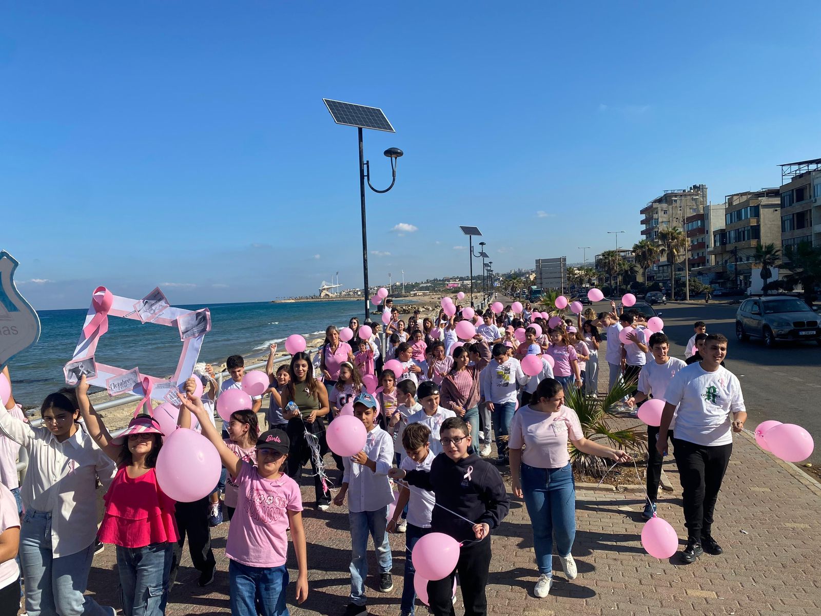 وفي ختام النشاط، أطلق التلامذة البالونات الزهرية في سماء المدينة تعبيراً عن الأمل بالحياة، ورسالة تضامن ودعم لكل امرأة تكافح من أجل صحتها