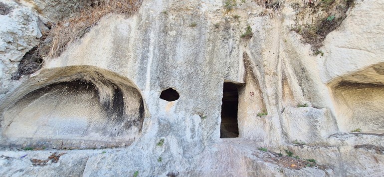 ولفت يونس إلى «ان «قصر ابو حنين» يمتد بطول حوالي 80 مترا في شير صخري شاهق، نحتت فيه ثماني غرف حفرت بداخلها عدة نووايس، وحفرت خارجها عدد من النقوش تمثل أسدا ورجلا يحمل سيفه، وأعمدة مستديرة الشكل ترتكز على قواعد وتنتهي في اعلاها بمنحوتات تزينية كروية الشكل، وتعود للعهد الروماني».
