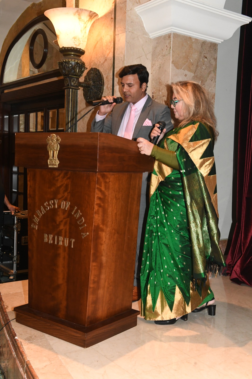 As for the cultural section in this event, Ms. Maria Matar and Mr. Kamal Kumar performed an enthralling Bollywood song “Ek Haseena Thi, Ek Deewana Tha”, a timeless melody known for its emotional depth and artistic charm. Mr. Daniel Balabane, a Lebanese musician, also presented a mesmerising performance on an Indian instrument called the Shehnai, which reflected the artistic diversity and vibrant cultural spirit of India. The event was concluded with a dinner reception.