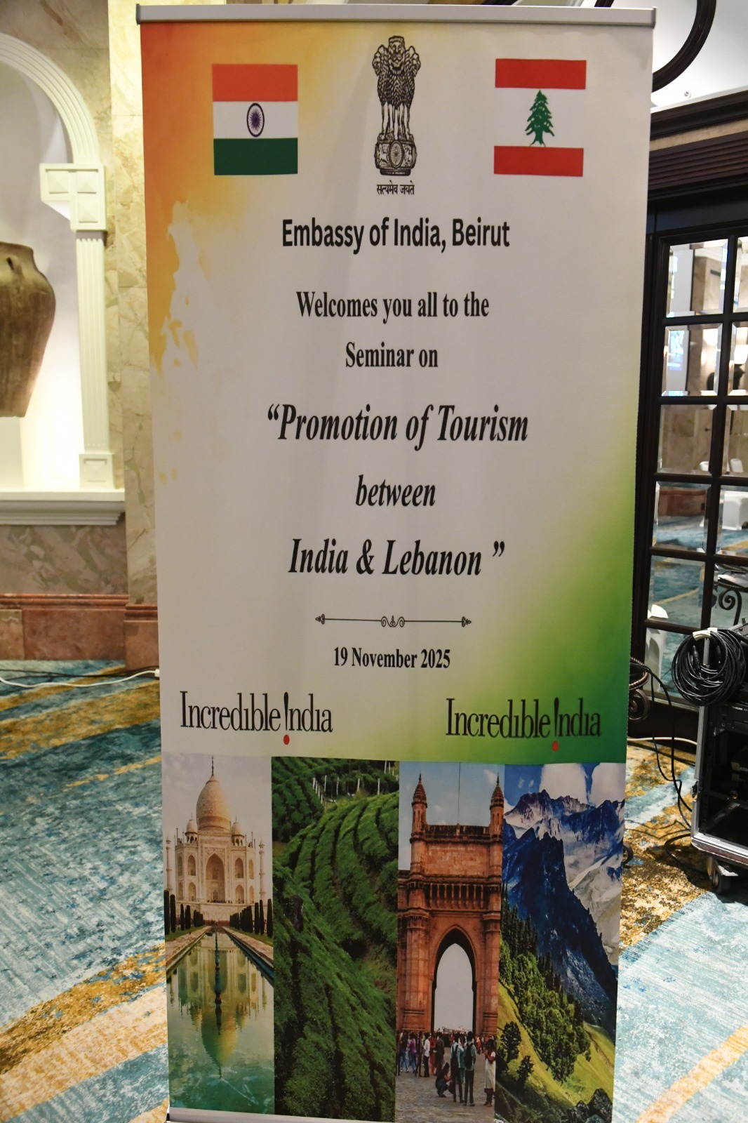 The Embassy of India in Beirut hosted a seminar on “The Promotion of Tourism & Business Opportunities between India and Lebanon”, on Wednesday 19 November 2025 at Phoenicia Hotel, Beirut. The event was graced by the Minister of Youth and Sports in Lebanon Dr. Nora Bayrakdarian, and the Member of Parliament Mr. Neemat Frem. Many senior officials, prominent members of the business community, travel and tourism sector, representatives of international airlines in Lebanon, media persons and members of Indian diaspora also attended the event.