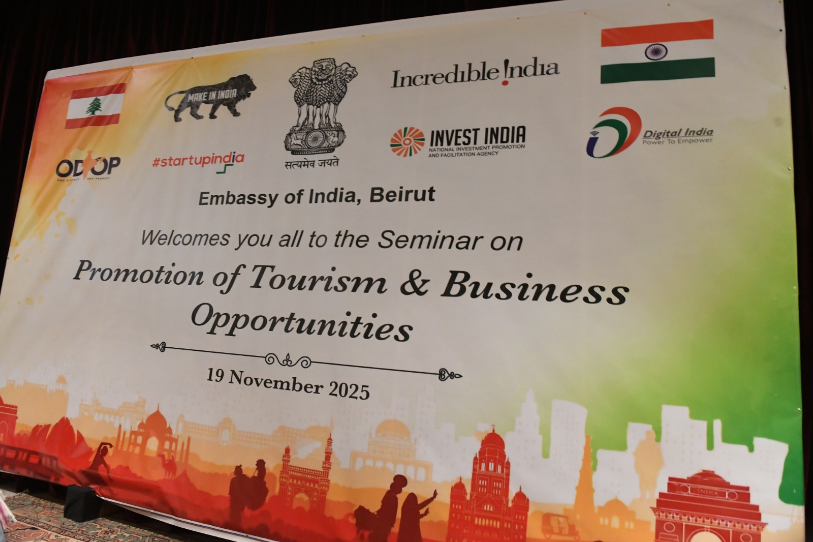 استضافت سفارة الهند في بيروت ندوة بعنوان “تعزيز السياحة وفرص الأعمال بين الهند ولبنان”، يوم الأربعاء 19 تشرين الثاني 2025، في فندق فينيسيا، بيروت. وقد شرّفت الندوة وزيرة الشباب والرياضة في لبنان الدكتورة نورا بيرقداريان، والنائب نعمة افرام. كما حضر الندوة عدد من كبار المسؤولين في التجارة والأعمال وقطاع السفر والسياحة، فضلًا عن ممثلين عن شركات الطيران الدولية في لبنان وإعلاميين وأبناء الجالية الهندية.