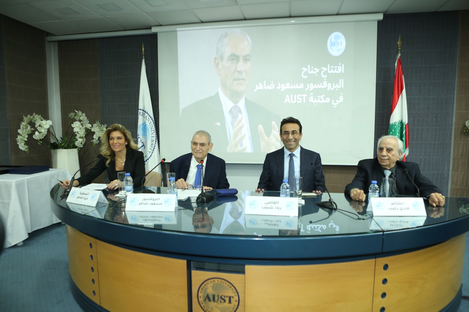 بمناسبة افتتاح جناح خاص في جامعة AUST، للمؤلفات المكتبيه الخاصة للمؤرخ البروفسور مسعود ضاهر، نظم يوم الاثنين 22 كانون الاول، في حرم جامعة AUST، احتفال لافتتاح الجناح، ولشكر وتكريم البروفسور مسعود ضاهر على مبادرته الكريمة.