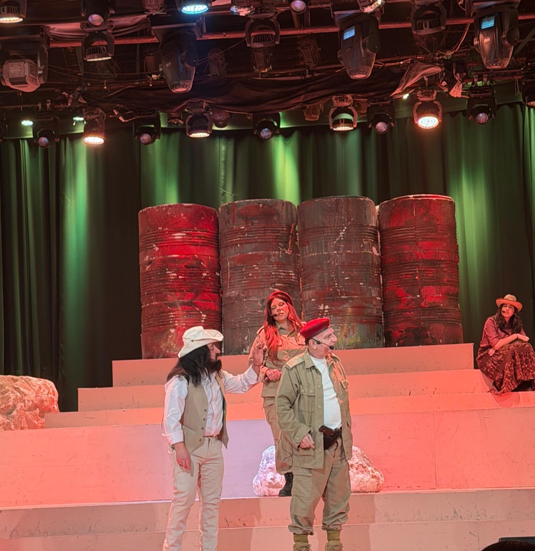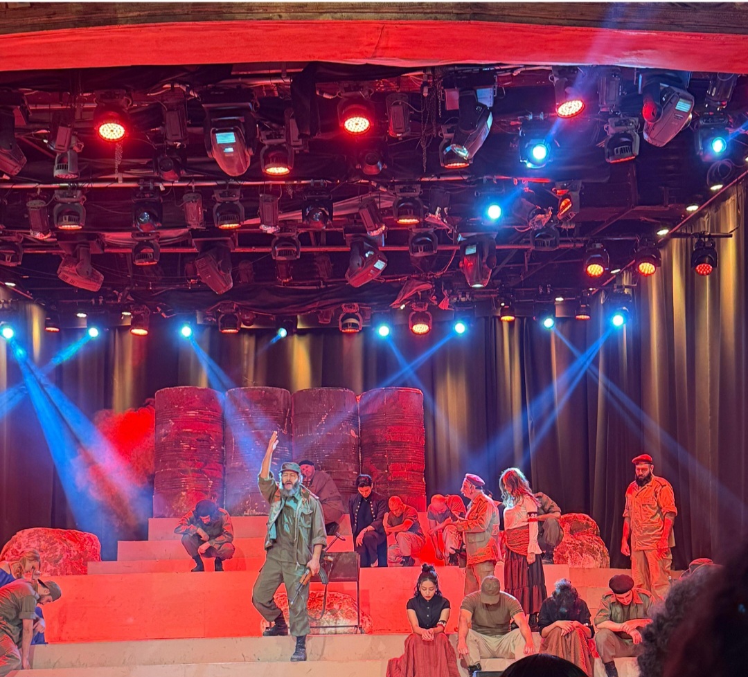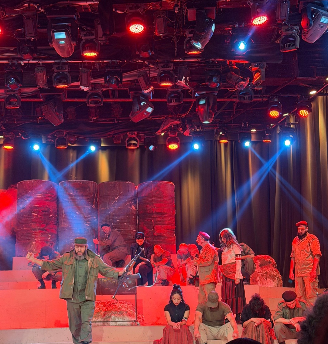 المسرحية تتناول موضوع عسكري وثوري والمشاهد بالمفترض تكون دراميه ولكن «الأخوان صبّاغ» جعل للمسرحية طابع ثاني بعرض الاغنيات بطريقة حورات كاملة بين الشخصيات مما جعل تفاعل كبير مع الجمهور وخفف من حدة الحزن وادخل الفرح وأظهر ايضا” بالمسرحية أدوار الشجاعه والاقدام بطريقة ملفته …. اذ تخلل المسرحية عروض اغنيات وموسيقة لبنانيه مع مزج من الموسيقة الكوبيه لتكون غنية بالتنوع والخلطه الرائعه …..وقد أدّت كارين رميا أغنية «تشي غيفارا» الشهيرة بصوت عذب …. وبرع فريد صبّاغ مع مجموعة الكورال في أداء «نشيد الثورة»….. انه بالفعل عمل مميز ….ومتقن إلى أقصى حد ….
