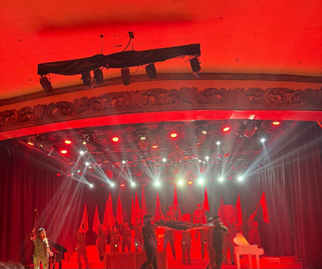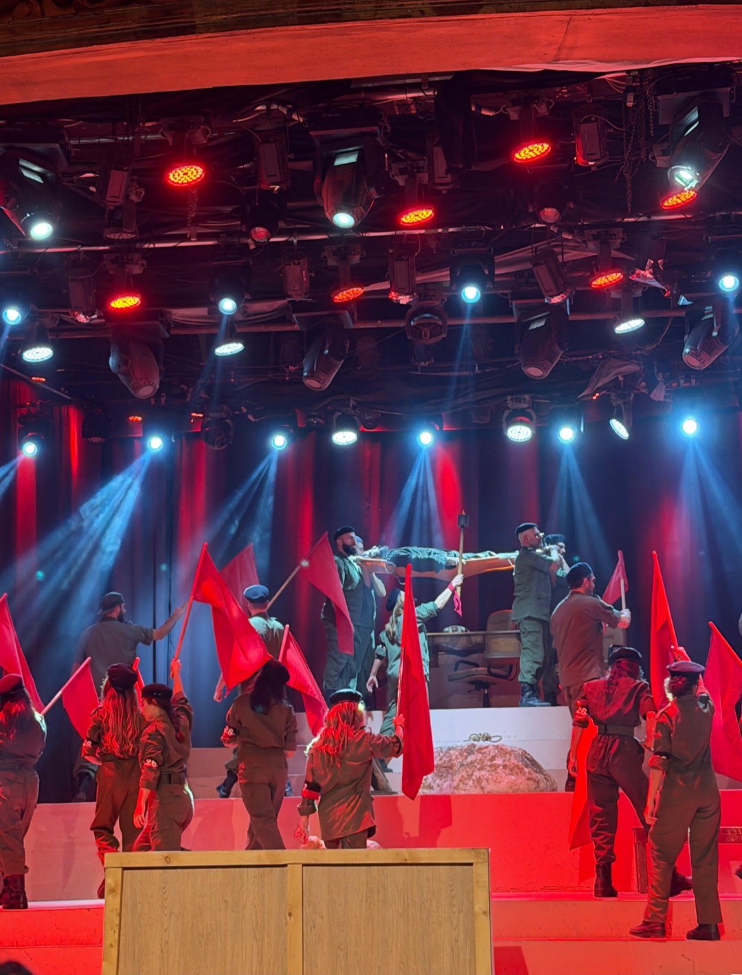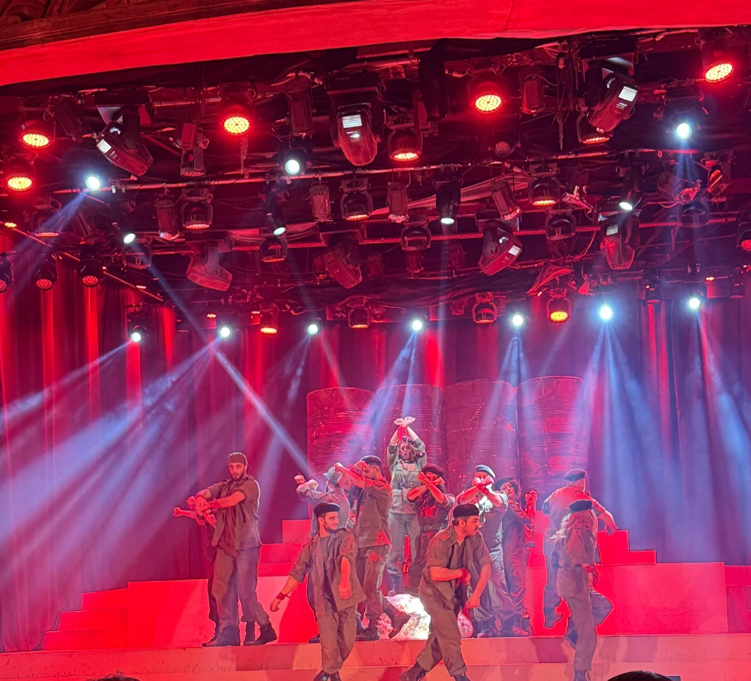 المسرحية تتناول موضوع عسكري وثوري والمشاهد بالمفترض تكون دراميه ولكن «الأخوان صبّاغ» جعل للمسرحية طابع ثاني بعرض الاغنيات بطريقة حورات كاملة بين الشخصيات مما جعل تفاعل كبير مع الجمهور وخفف من حدة الحزن وادخل الفرح وأظهر ايضا” بالمسرحية أدوار الشجاعه والاقدام بطريقة ملفته …. اذ تخلل المسرحية عروض اغنيات وموسيقة لبنانيه مع مزج من الموسيقة الكوبيه لتكون غنية بالتنوع والخلطه الرائعه …..وقد أدّت كارين رميا أغنية «تشي غيفارا» الشهيرة بصوت عذب …. وبرع فريد صبّاغ مع مجموعة الكورال في أداء «نشيد الثورة»….. انه بالفعل عمل مميز ….ومتقن إلى أقصى حد ….