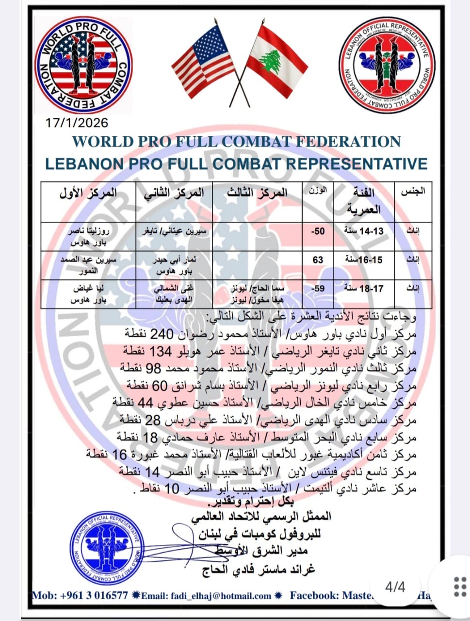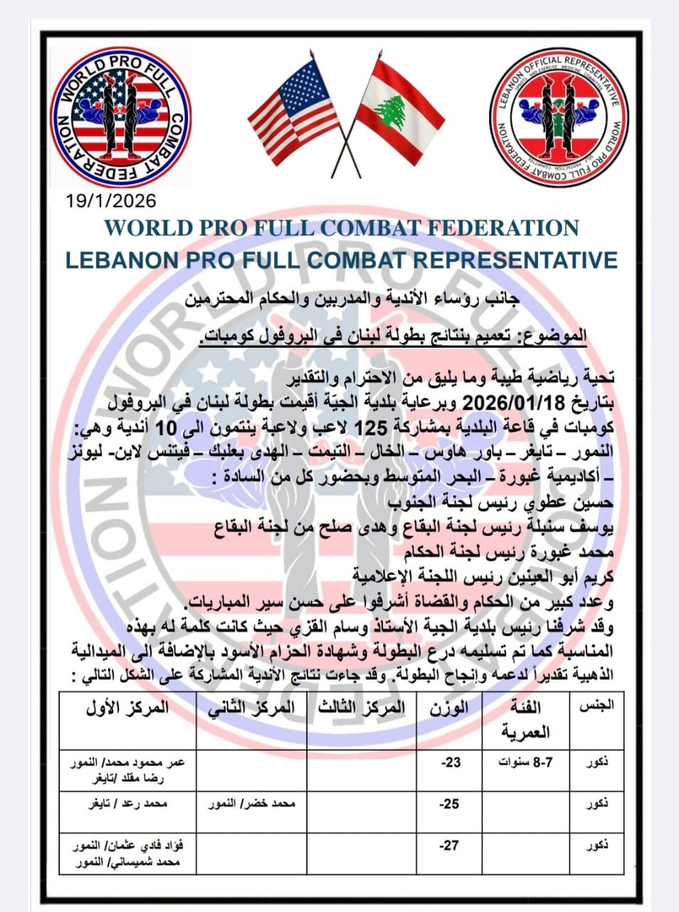 تحت عنوان “الرياضة شمس الحياة”، غصت قاعة بلدية الجية ب 125 متبارز في لعبة “Pro Full Combat”