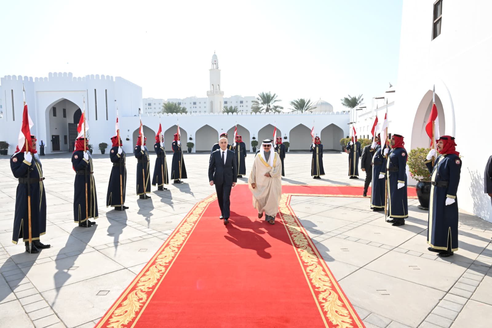 وعقب الوصول إلى قلعة الشرطة، أدّى حرس الشرف التحية، ثم توجّه الوزيران الحجار وآل خليفة إلى قاعة الاجتماعات.