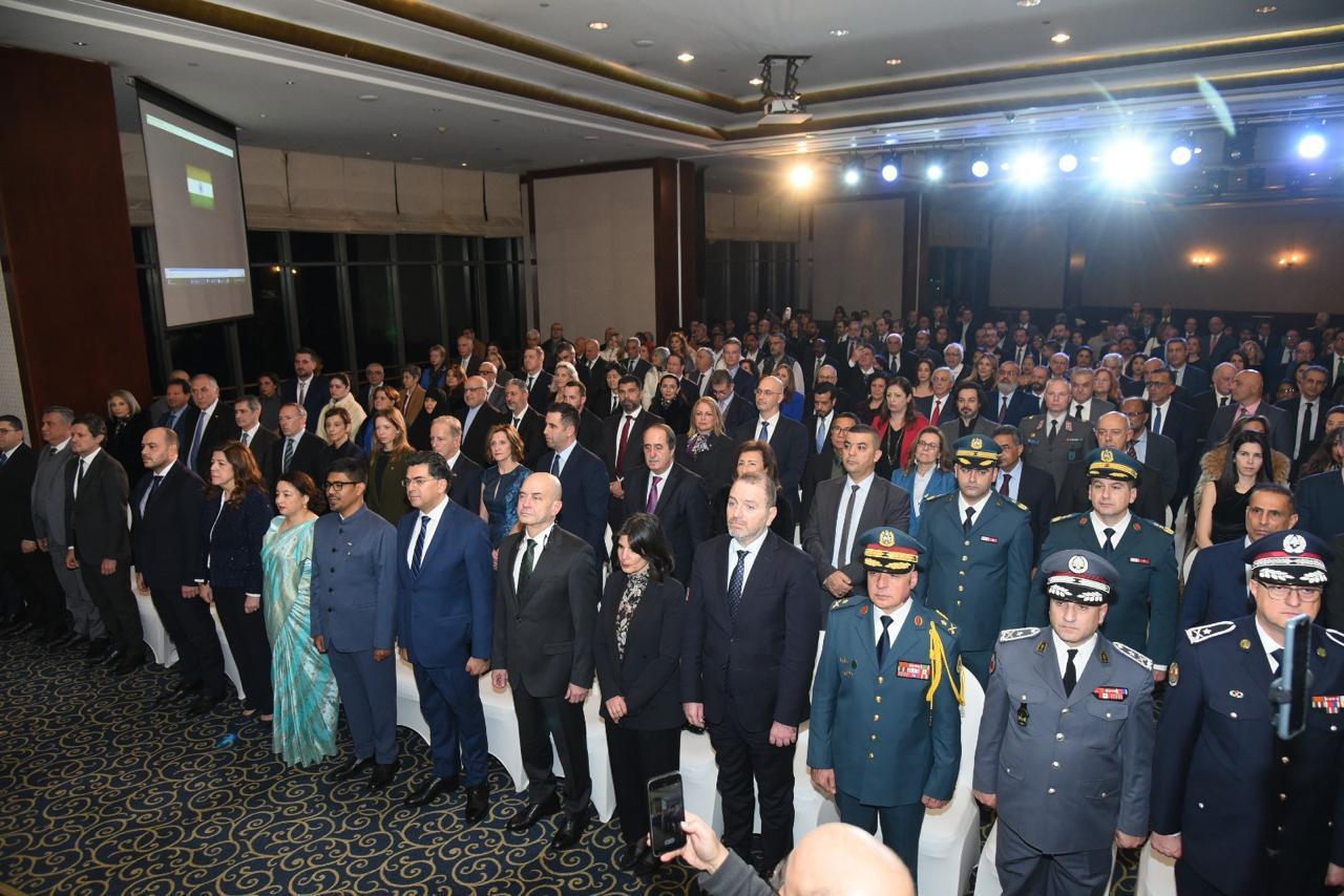 After the Lebanese and Indian national anthems which was led by Lebanese International Suprano Maria Mattar, Ambassador Sheikh delivered a speech in Arabic and English, which he welcomed the attendees and praised the friendly relations between Lebanon and India, and the progress made at various levels. This year marks the 72nd Anniversary of establishment of diplomatic relations between India and Lebanon and that the Embassy of India in Lebanon has always remained open despite challenging times that Lebanon faced.